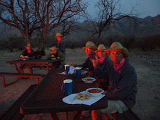 That nite we had a cowboy nite...Chili and chips, a bonfire and Cowboy Joe came along to entertain us. Bubba gave us all cowboy hats and scarf to wear for this momentuous occasion. Cowboy Joe had some really cute funny poems he created from life happenings. Everyone got a big kick out of him until he got political about immigration and then we all started leaving....